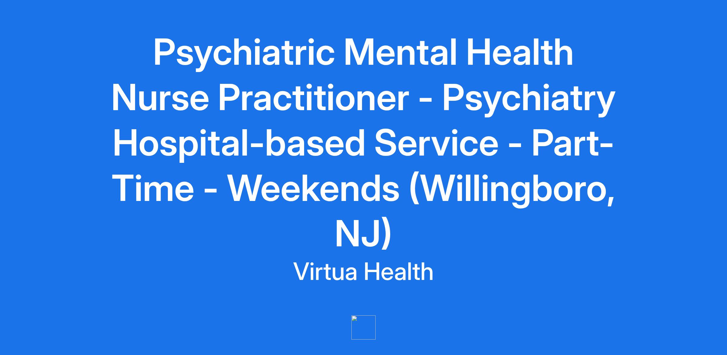 Psychiatric Mental Health Nurse Practitioner - Psychiatry Hospital-based Service - Part-Time - Weekends (Willingboro, NJ)
