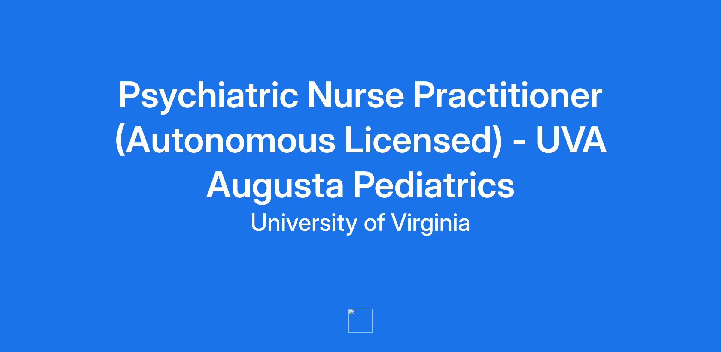 UVA Augusta Pediatrics is seeking an Autonomous Licensed Psychiatric Nurse Practitioner for their practice in Fishersville, VA. 2-3 years of experience is required.