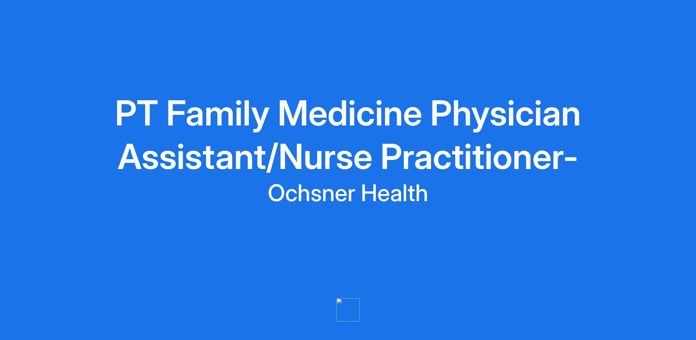 PT Family Medicine Physician Assistant/Nurse Practitioner-