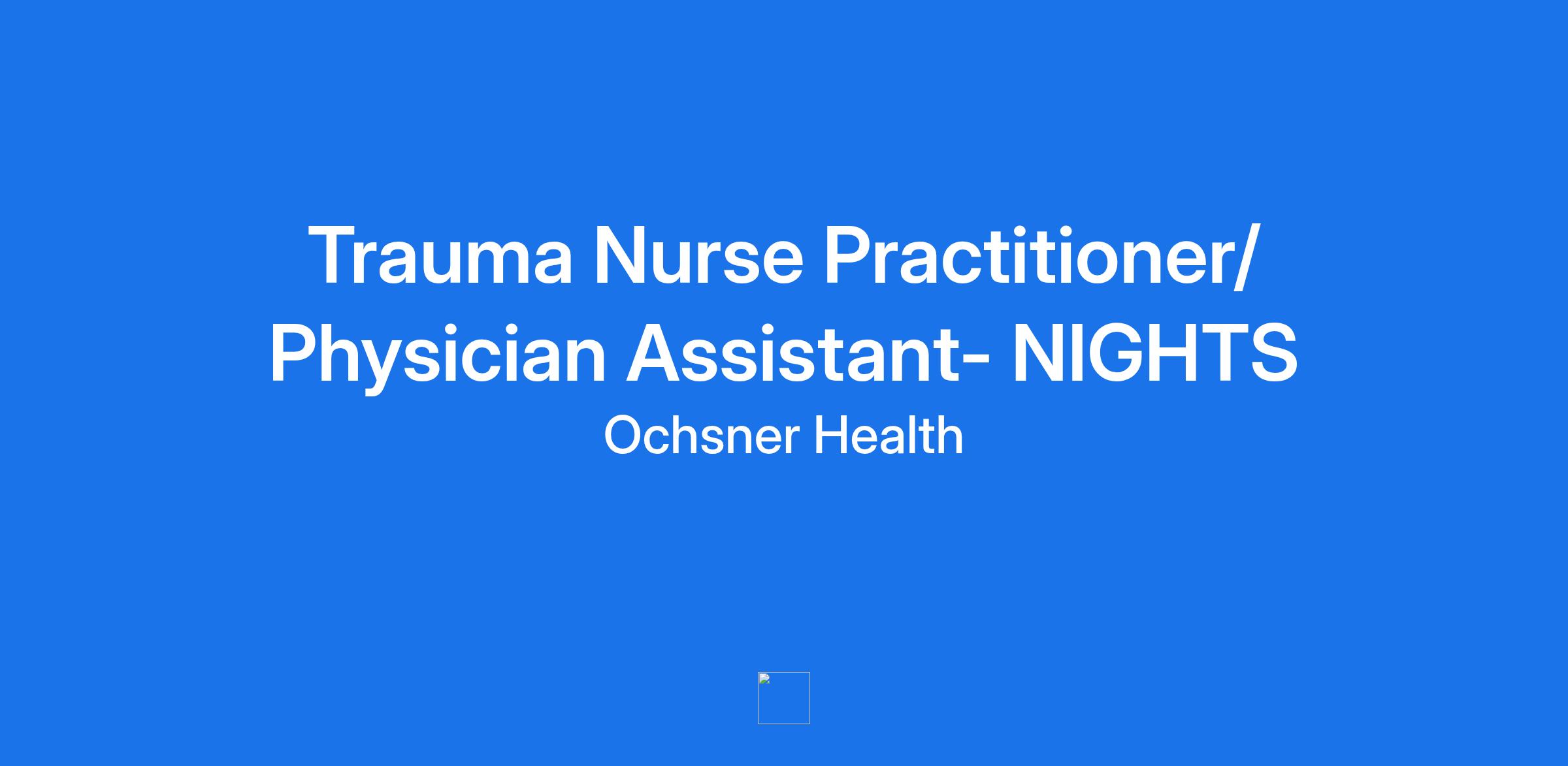 Ochsner is an equal opportunity employer. All qualified applicants will receive consideration for employment without regard to any legally protected class, including protected veterans and individuals with disabilities.