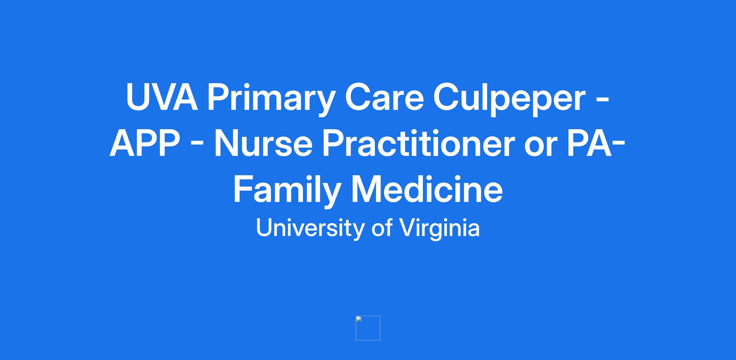 Join our dedicated team at UVA Primary Care Culpeper, where we provide comprehensive healthcare services to the Culpeper community. Our clinic operates Monday through Friday, from 8:00 AM to 5:00 PM, offering a balanced work schedule that supports both professional and personal well-being. We are seeking an Advanced Practice Provider to enhance our patient-centered approach and contribute to our mission of delivering exceptional care.
